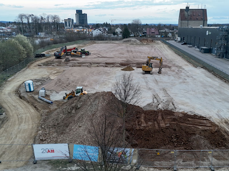 Die Tiefbauarbeiten laufen an, der Boden wird abgetragen und die Bagger sind bereits im vollen Einsatz.
